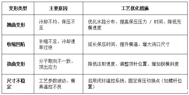 优化注塑工艺参数以减少透明厚壁塑件变形,需从温度、压力、冷却、速度等多维度协同调整,核心目标是平衡熔体流动平衡性、冷却均匀性和内部应力分布。以下是关键优化方向及具体措施: